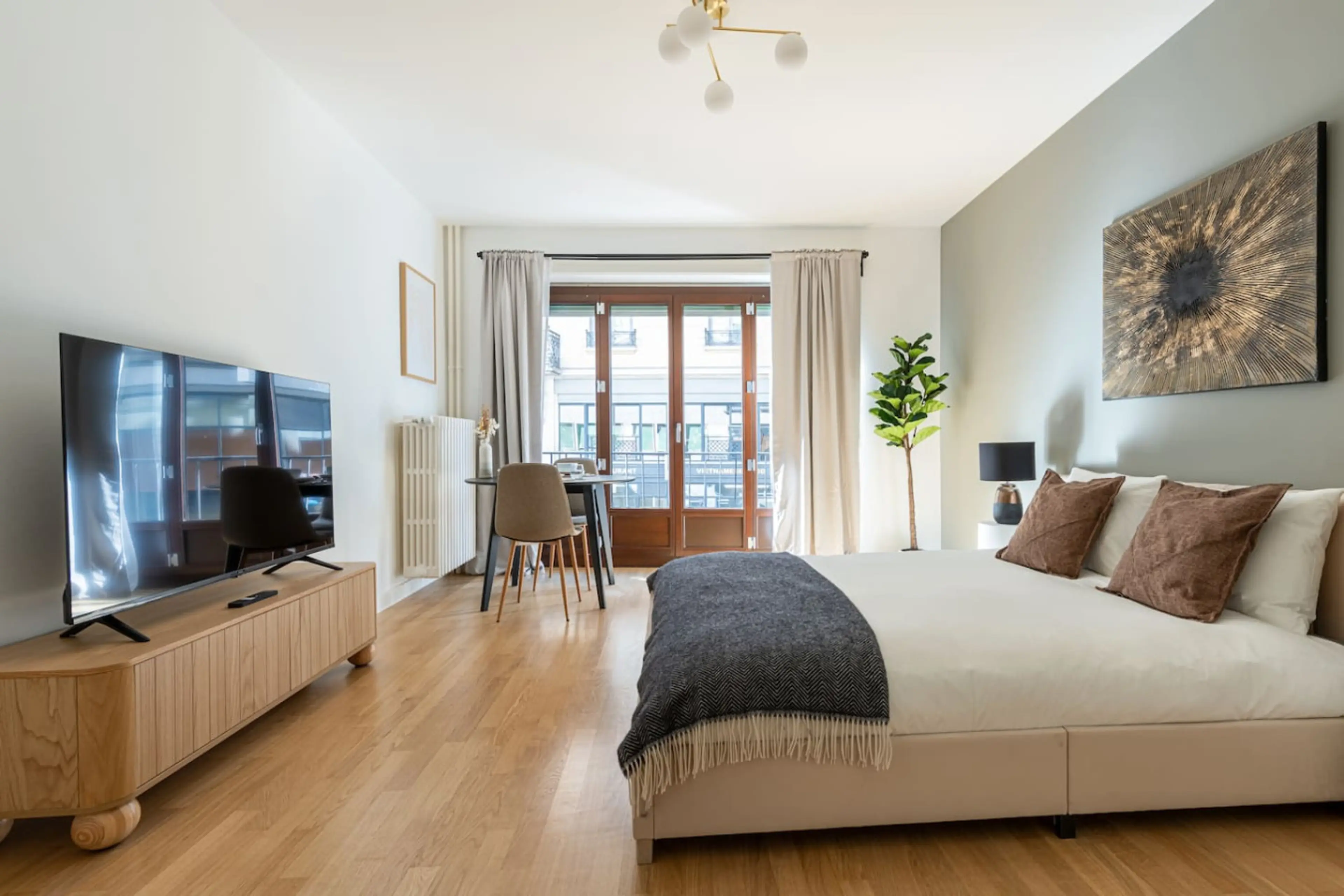 Discover the perfect base for your Geneva visit! This newly refurbished spacious studio is located in the heart of the city. Only a few steps away from the beautiful Lake Geneva, the main train station (Cornavin), public transportation, charming boutiques, the best restaurants, and cultural landma...